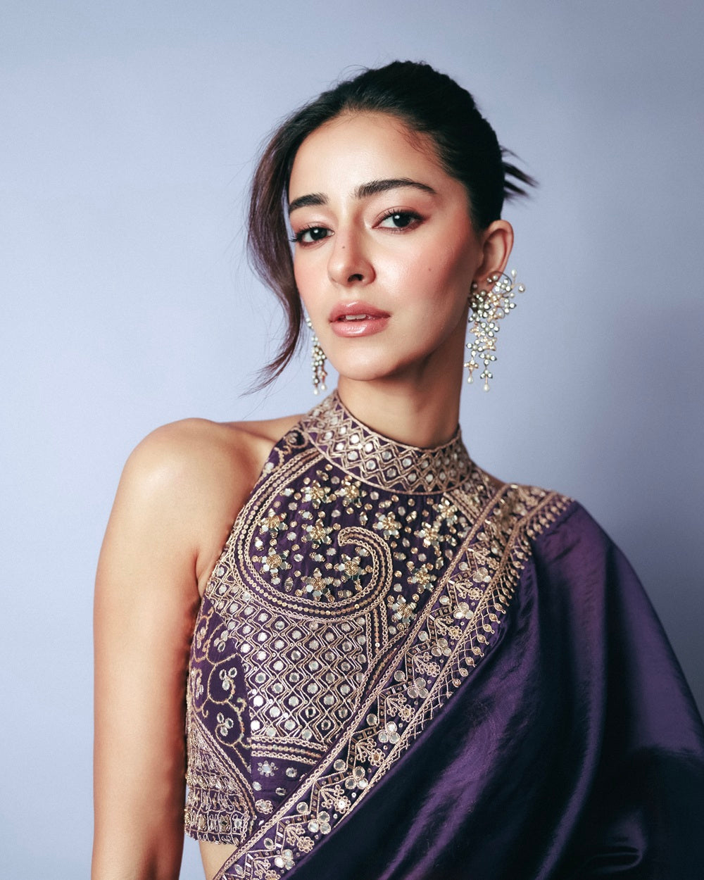 Classic Baigani Saree With Marodi & Mirror Work Border Paired With Halter Neck Fully Embroidered Blouse