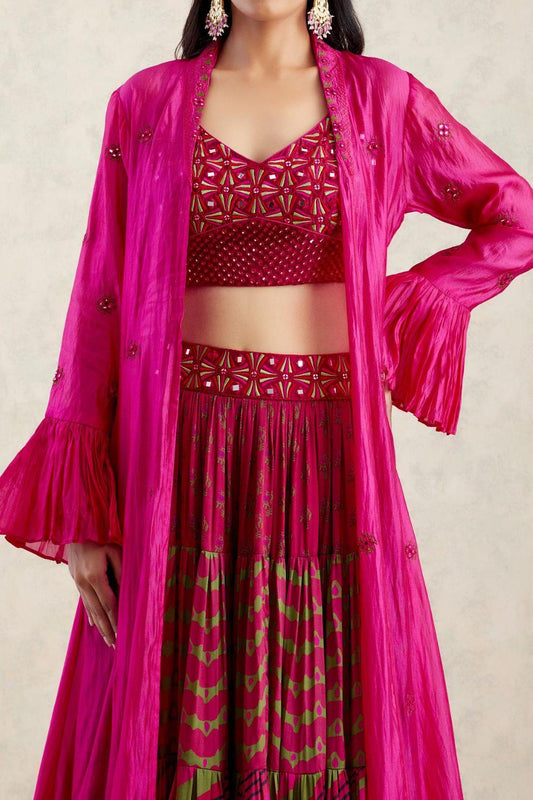 Brick Red Printed Lehenga Set