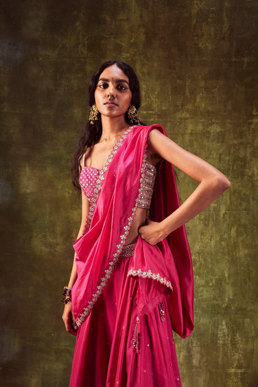 Rani Pink Saree With Blouse