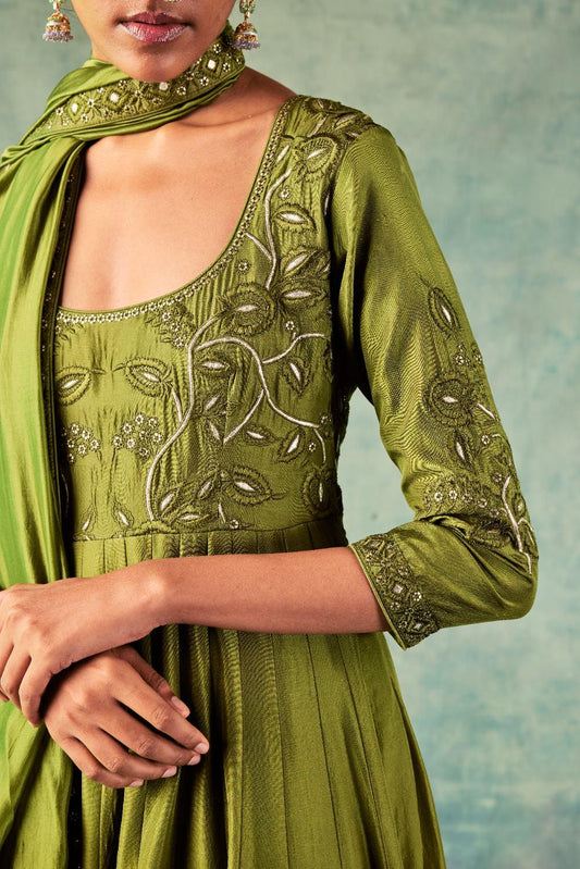 Olive Green Anarkali Set