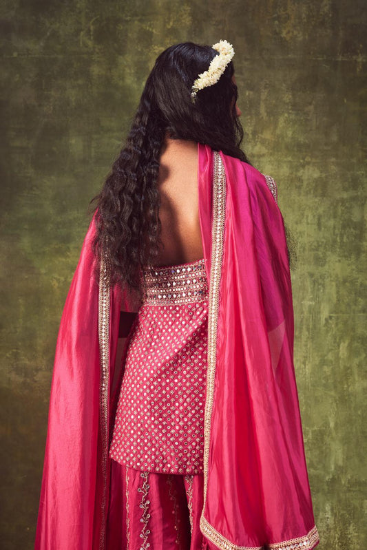 Rani Pink Kurti With Sharara Set