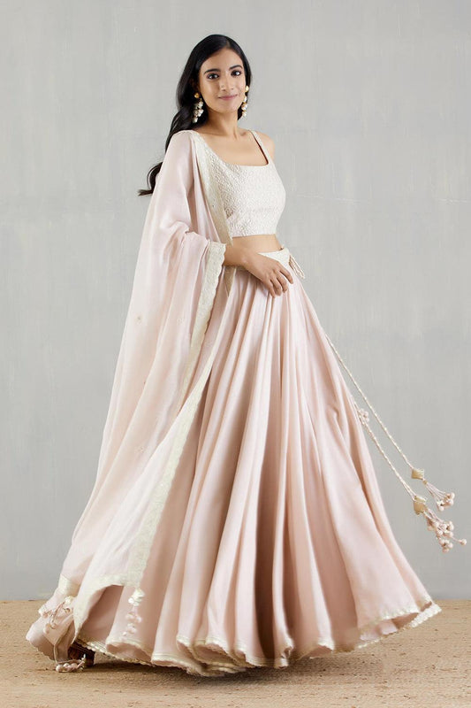 Blush Pink Chanderi Silk Lehenga...