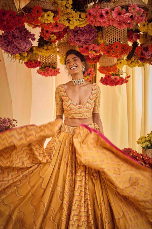 Mustard Printed Lehenga Set