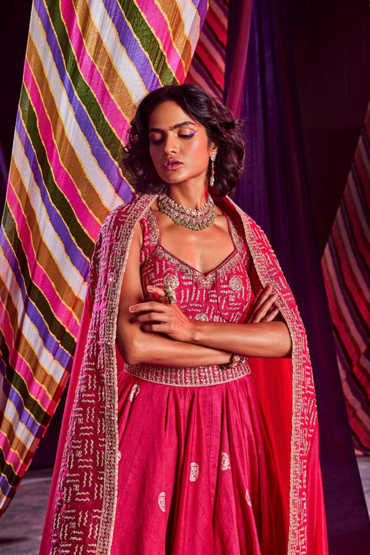 Rani Pink Heavy Lehenga Paired W...