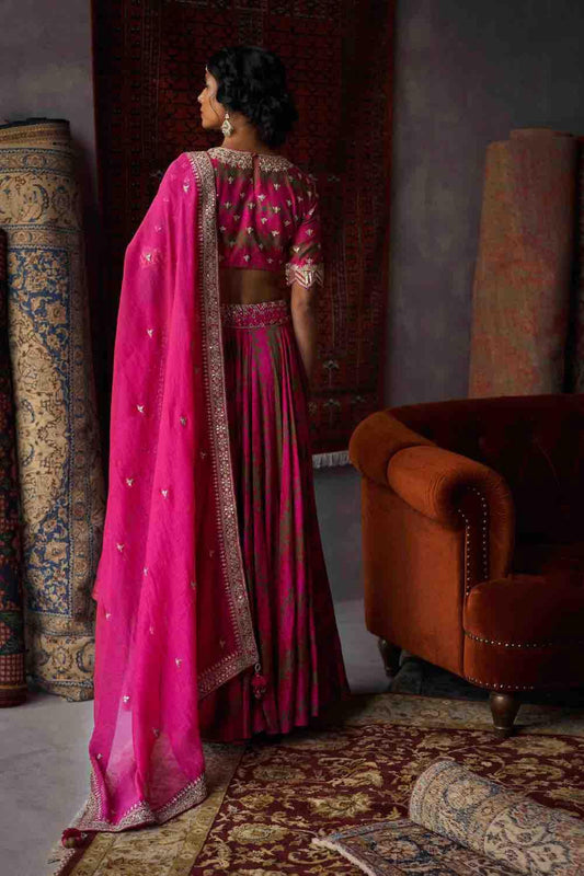 Rani Pink Printed Lehenga Set Wi...