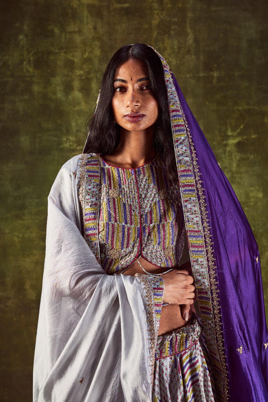 Grey Printed Lehenga Set