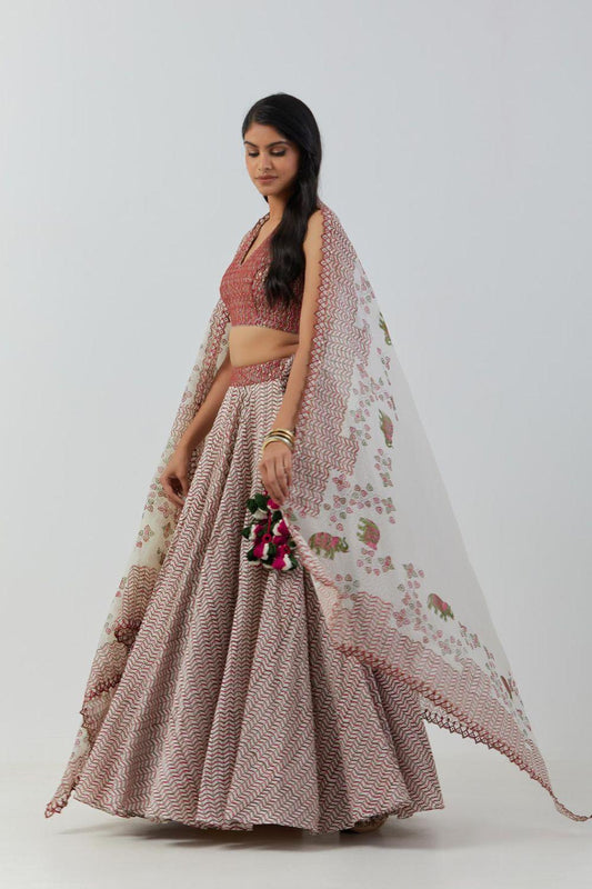 Ivory Printed Lehenga With Blous...
