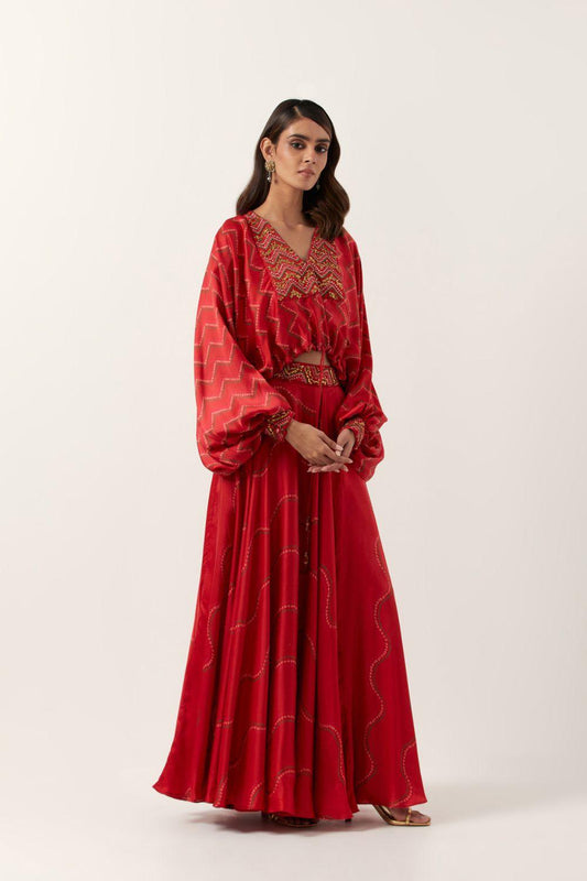 Surkh Laal Bandhani Top Paired W...