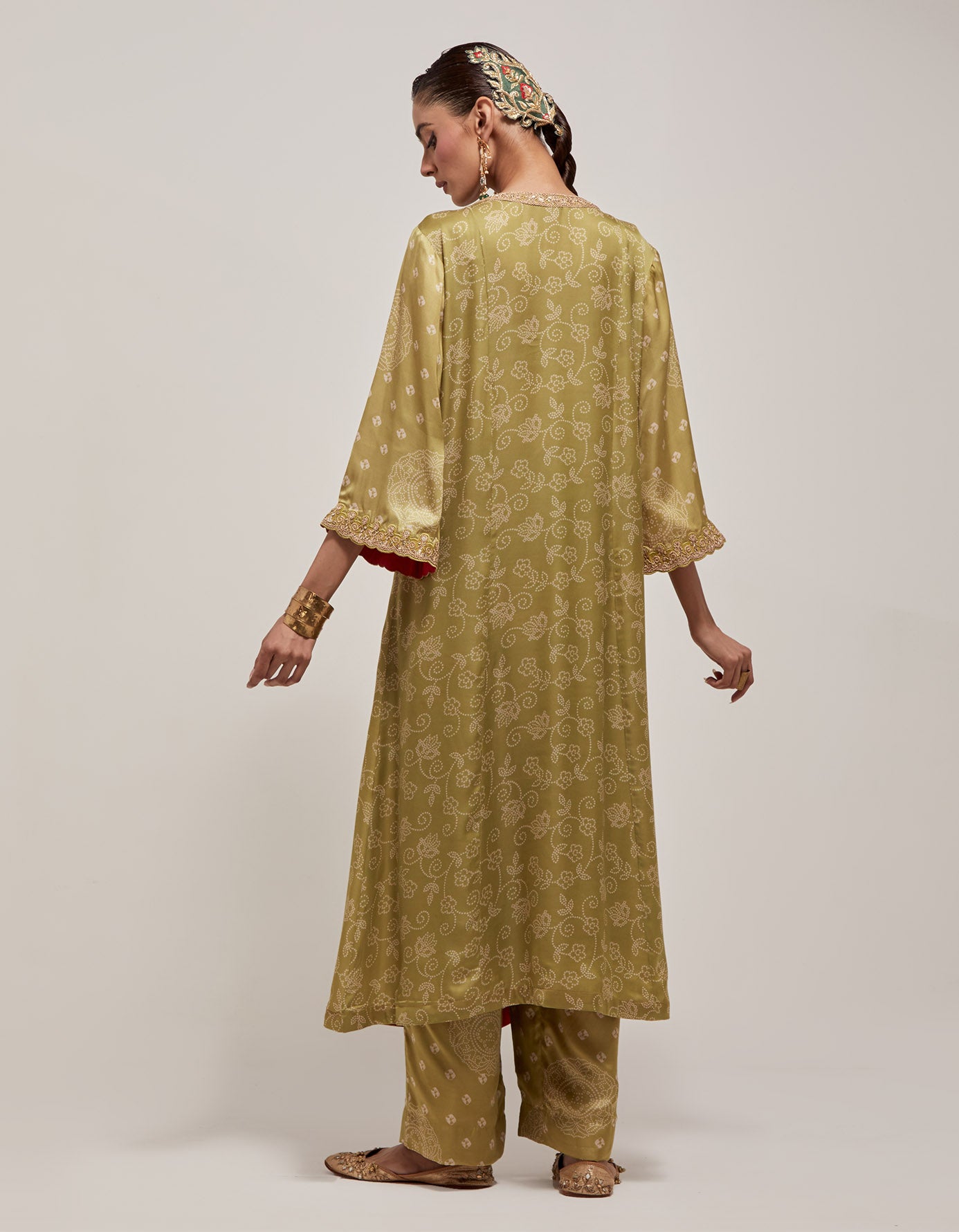 Combining The Elegance Of A Kurta With The Versatility Of A Kaftan, Our Kaftan Kurta Set Is Designed To Flatter All Body Types. Paired With Pants, Embellished With Patra And Marodi Work.