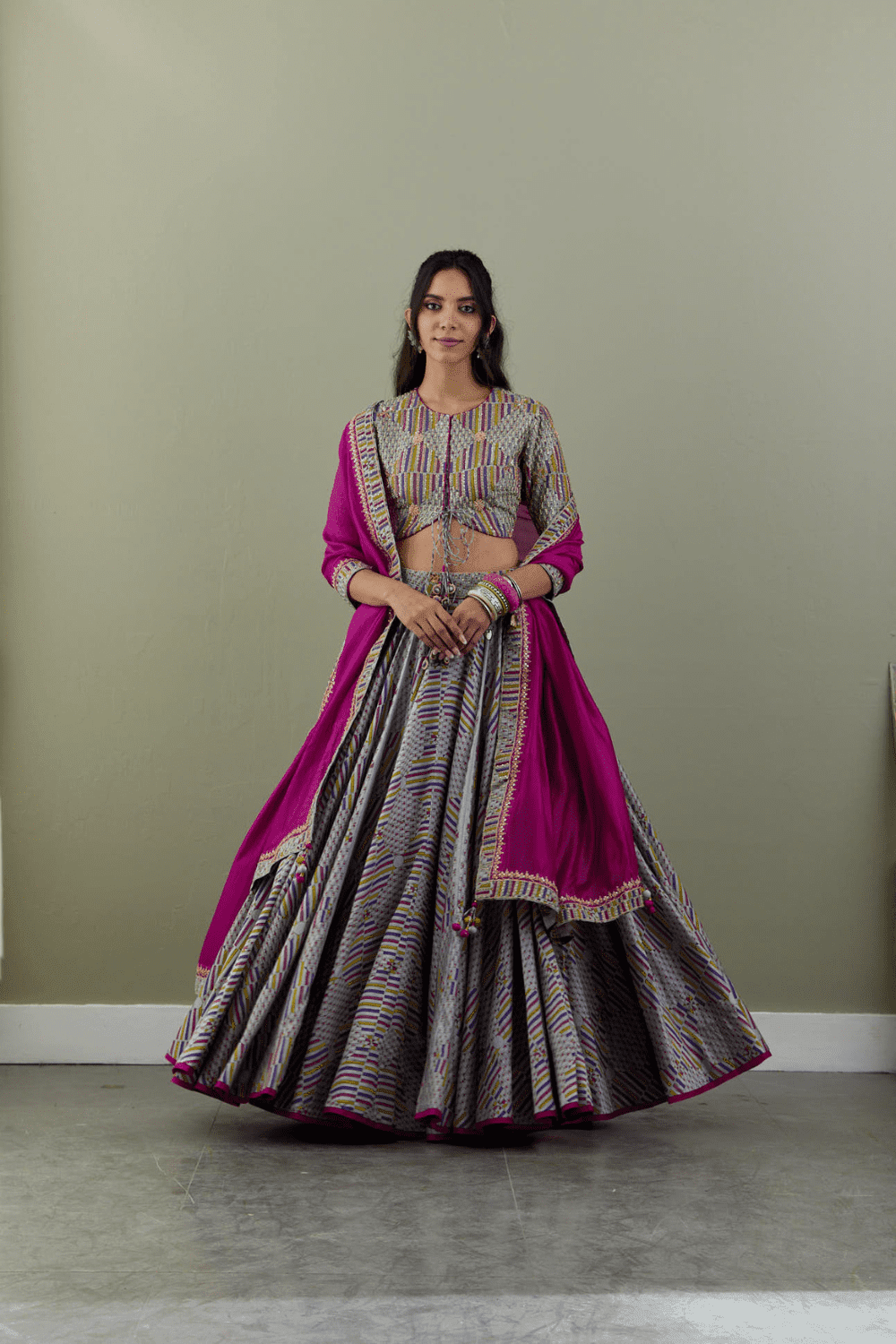 Utsav, a celebration of life and movement, with voluminous layers of fabric, ruffles, and pleats. The rich and vibrant colors of the Kalbelia costumes, the intricate designs and the way the fabric flowed as they danced. The collection embodies the playfulness and regality of the dance, and I hope that it will inspire others to celebrate life and movement too.