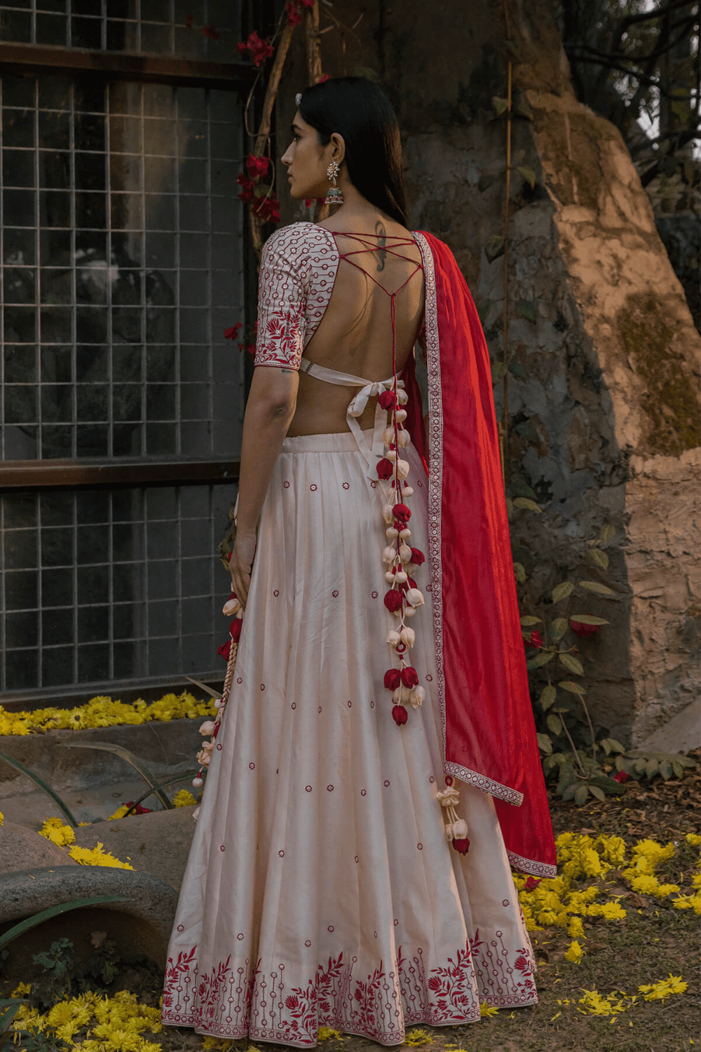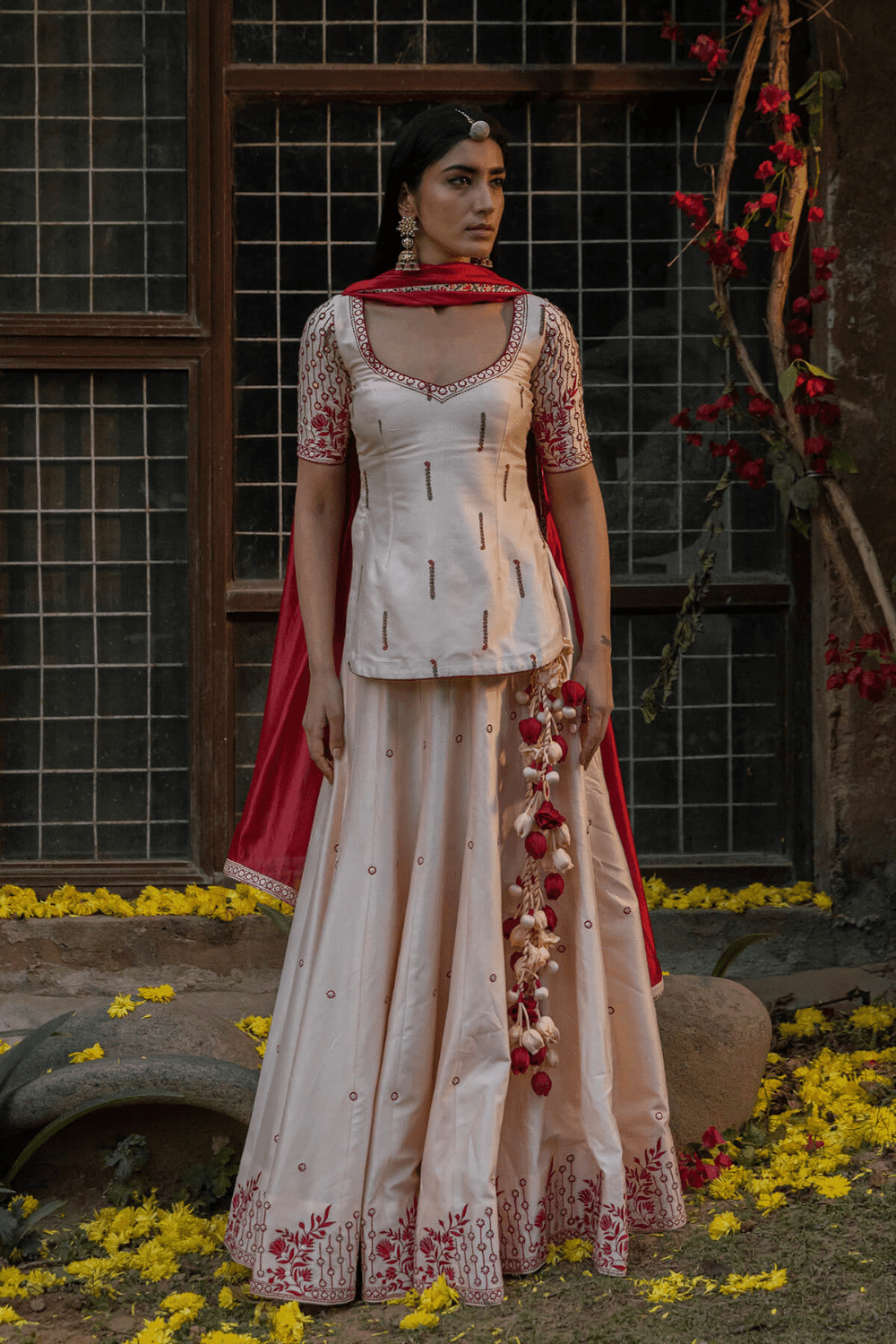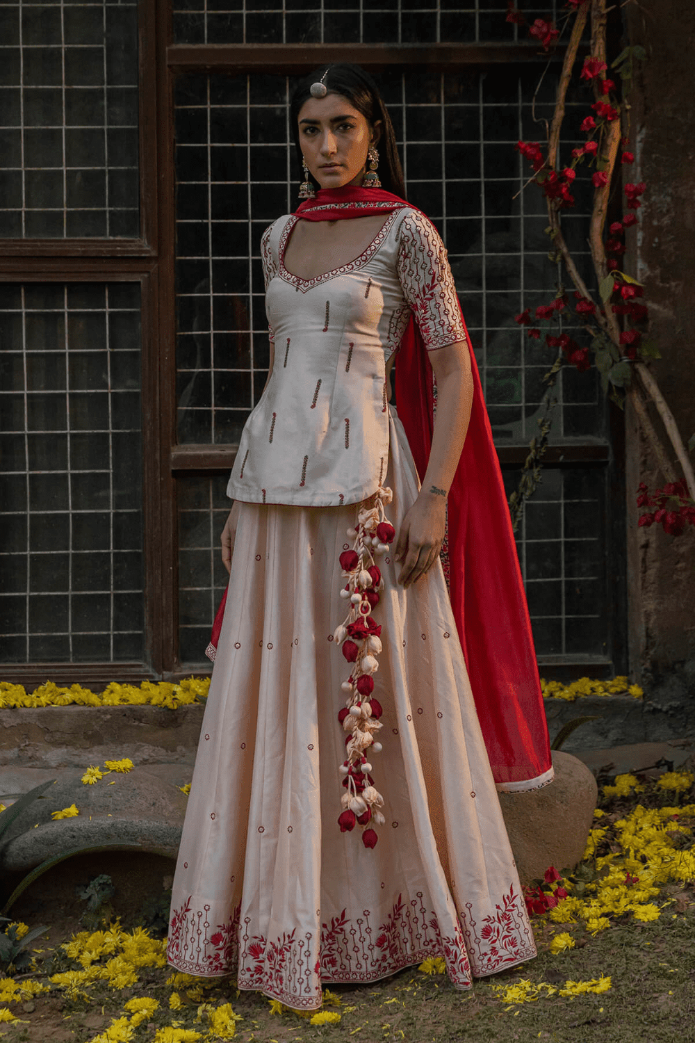 Lehenga With Short Kurti And Organza Silk Dupatta