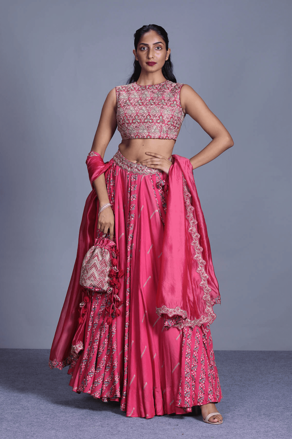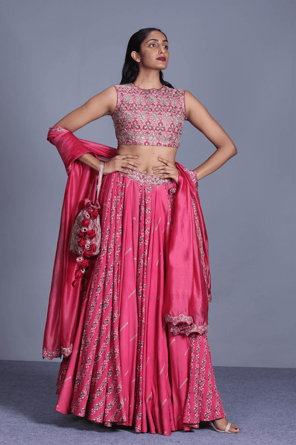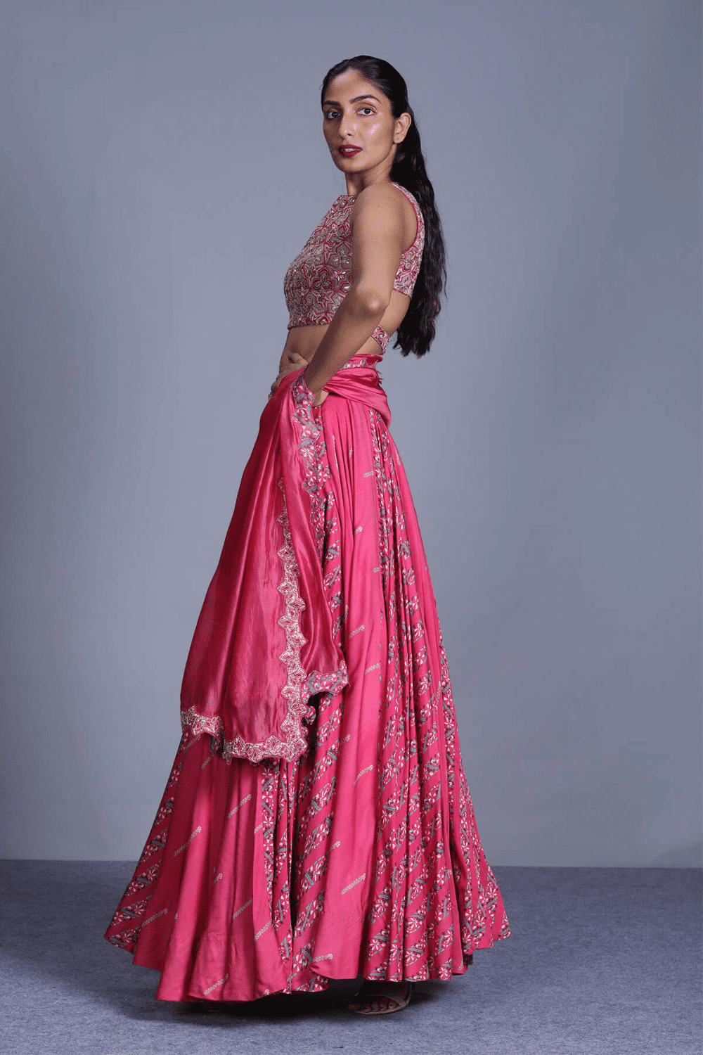 Printed Skirt with heavy hand embroidered blouse and dupatta