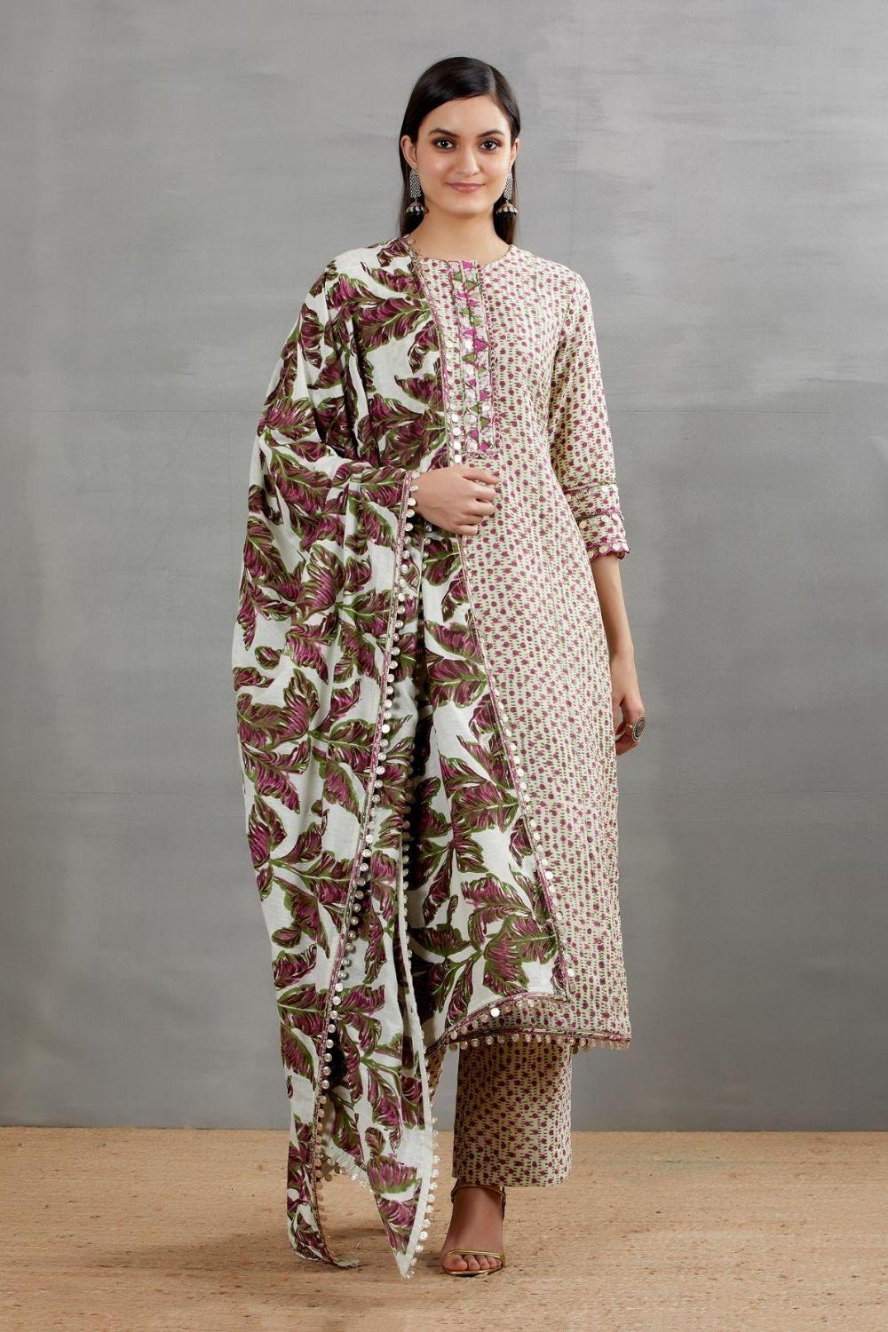 Printed Coin Work Straight Kurta With Printed Pants And Printed Dupatta