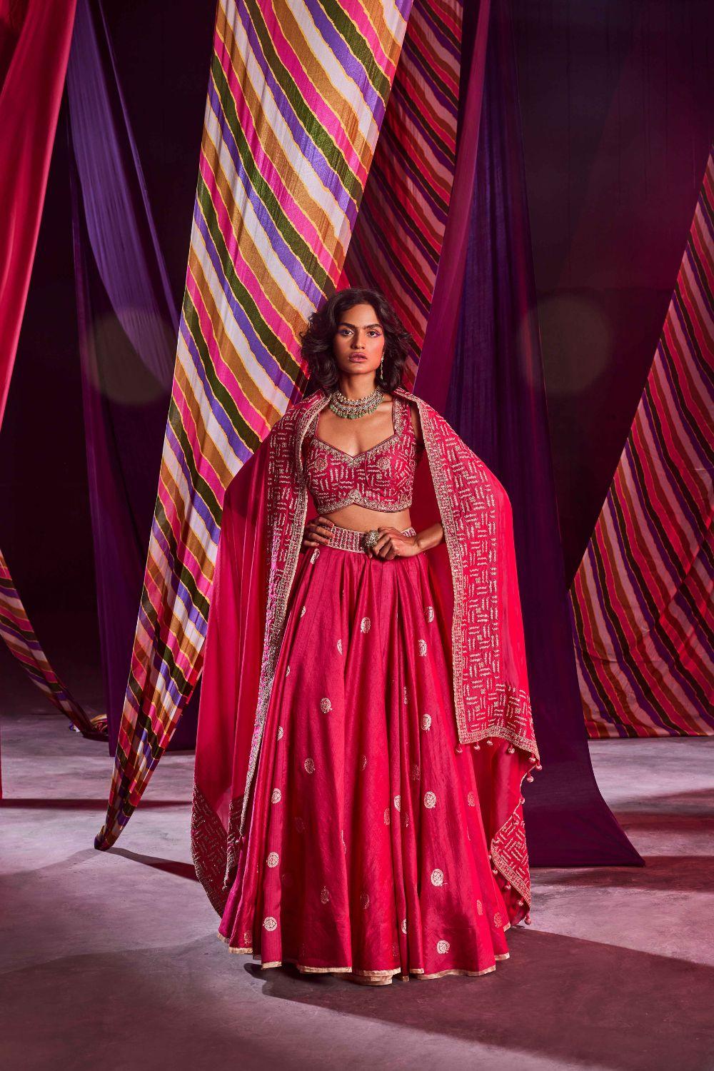 Rani Pink Banarasi Silk Lehenga With Marodi Work Belt Paired With Heavy Marodi & Zardozi Work Blouse & Dupatta