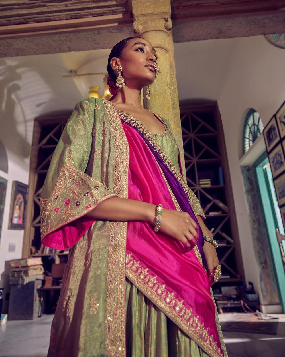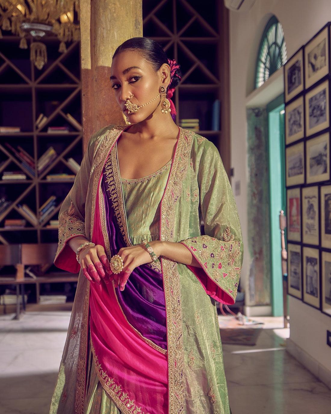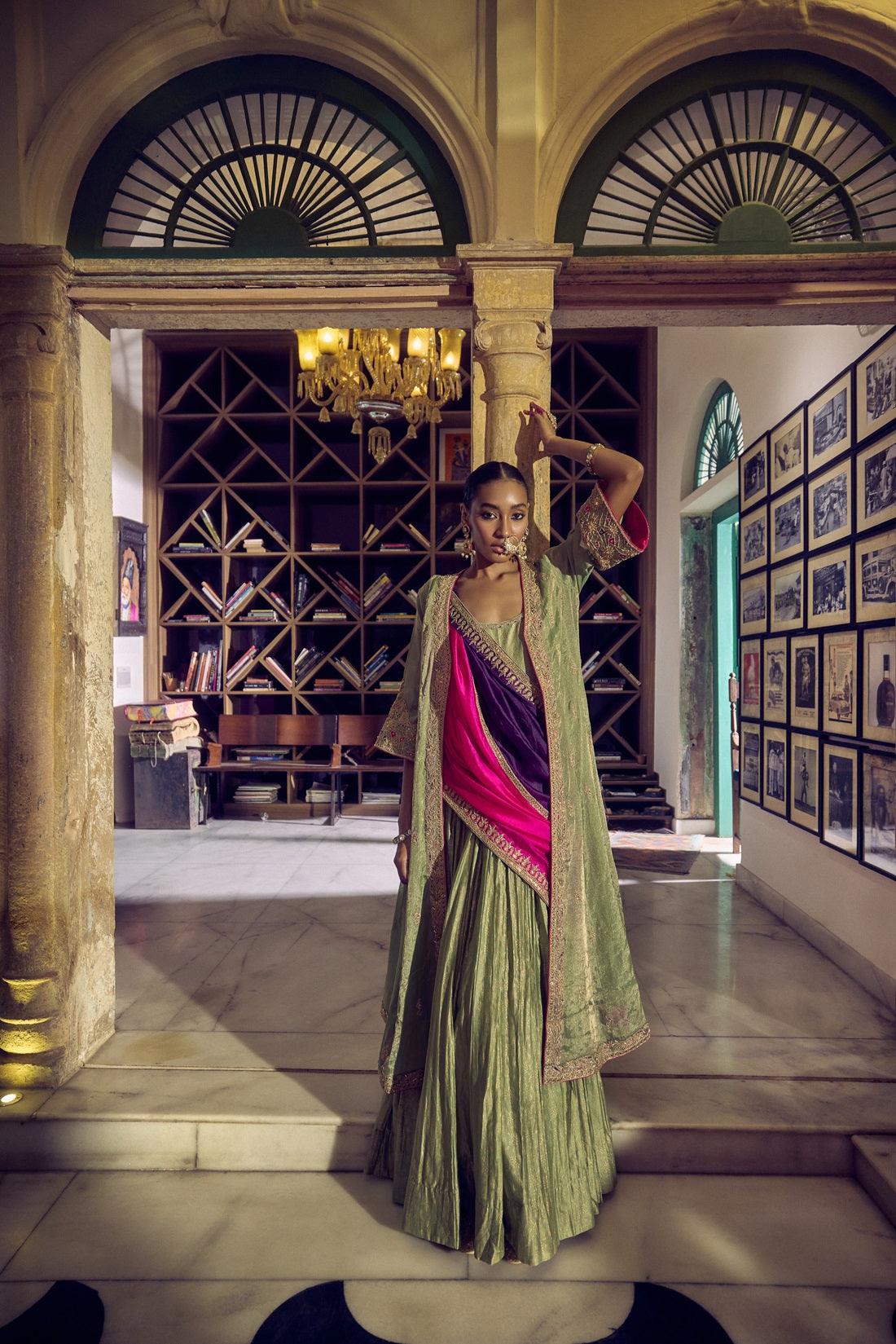 True To Its Name, The Rani Sa Anarkali From Our Couture Capsule Is Meant To Make You Feel Like Royalty. The Silk Kalidar Anarkali And Jacket Set Is Enriched With Gold Marodi and Patch Work Accents, Exuding Unmatched Regal Opulence. The Entire Set Is A Blend Of Grandeur With Comfort By Using Lightweight Materials And Exquisite Embellishments.