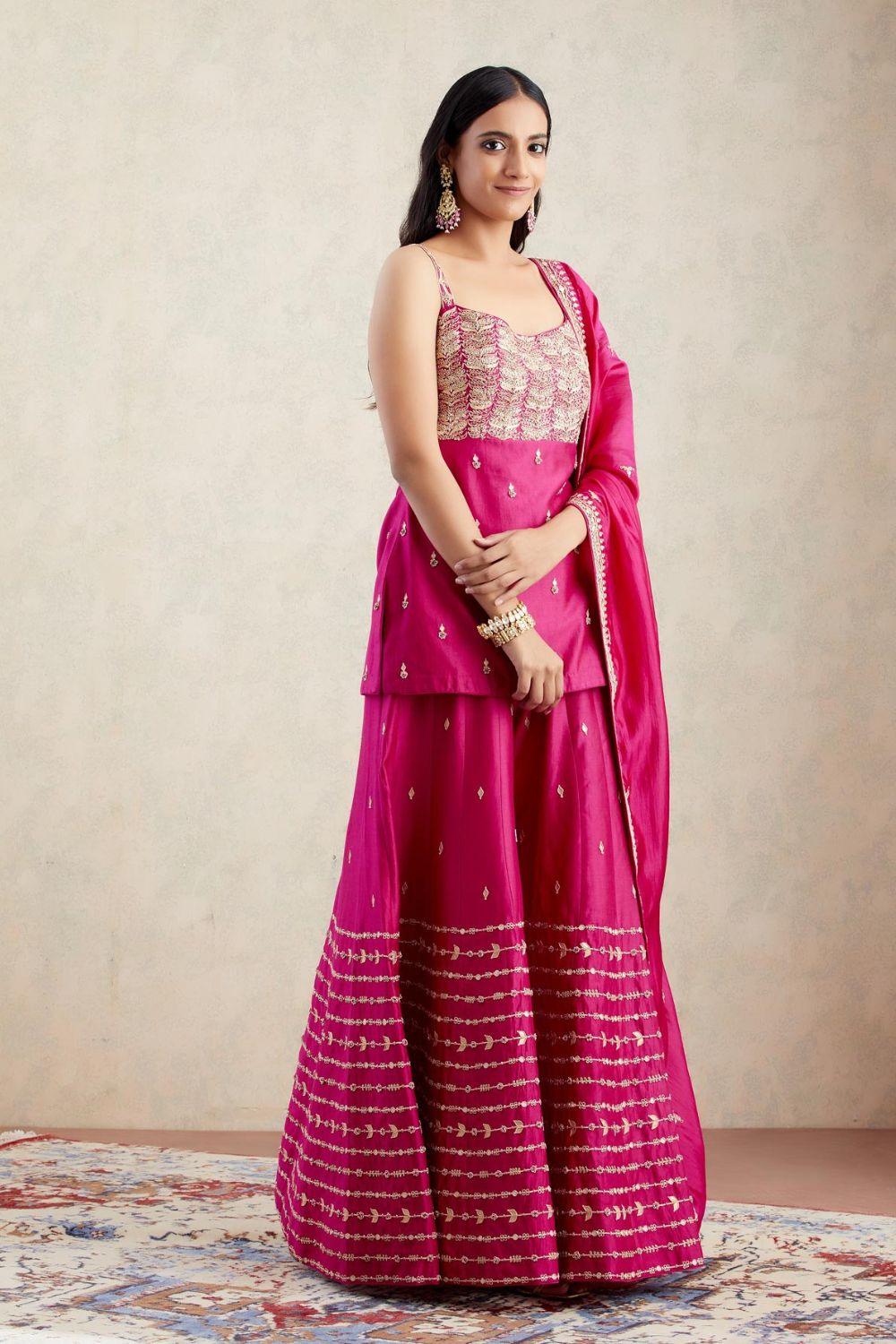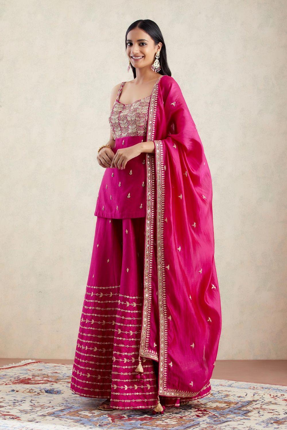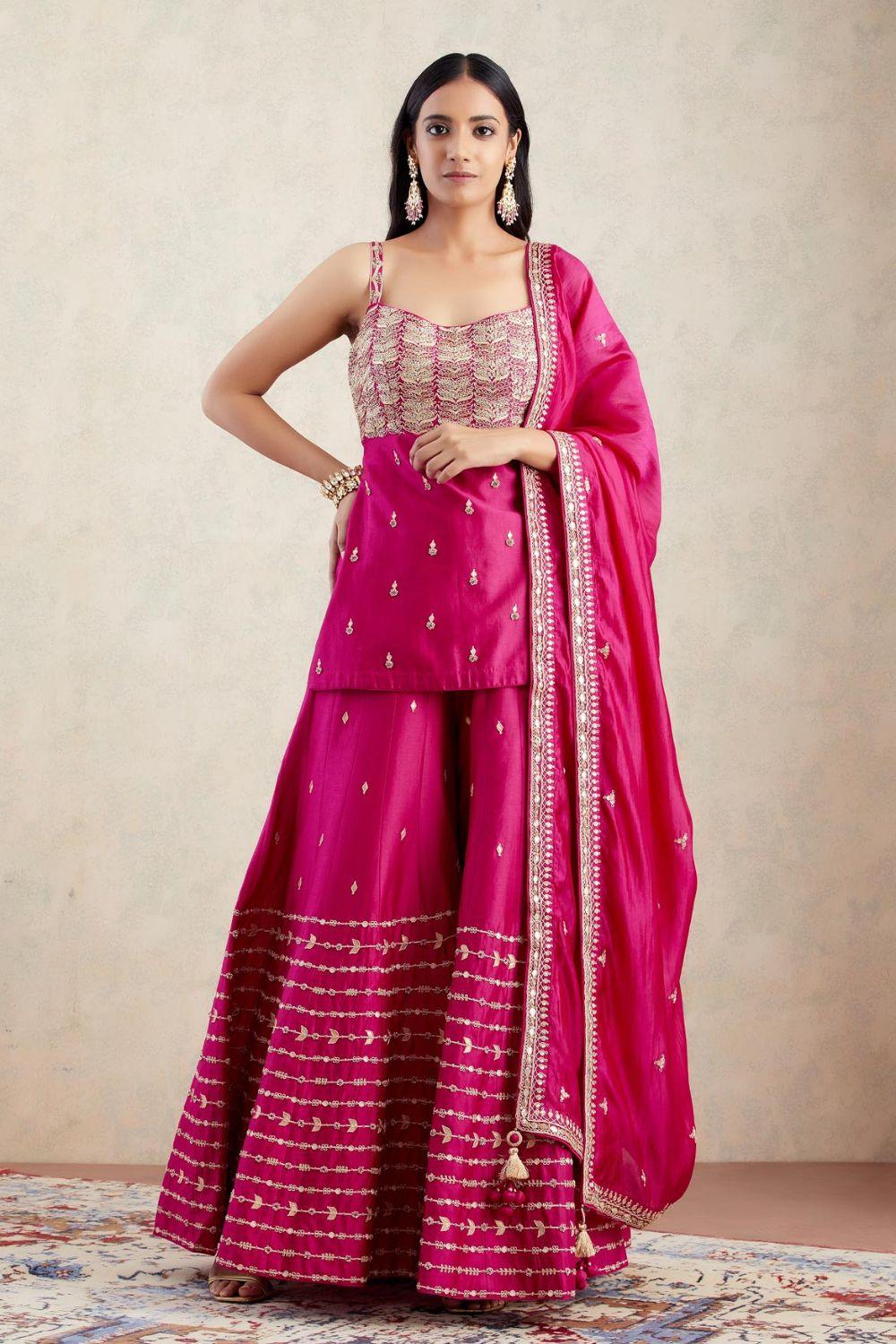 Strap Short Kurti full embllished with heavy hand work Garara and Dupatta