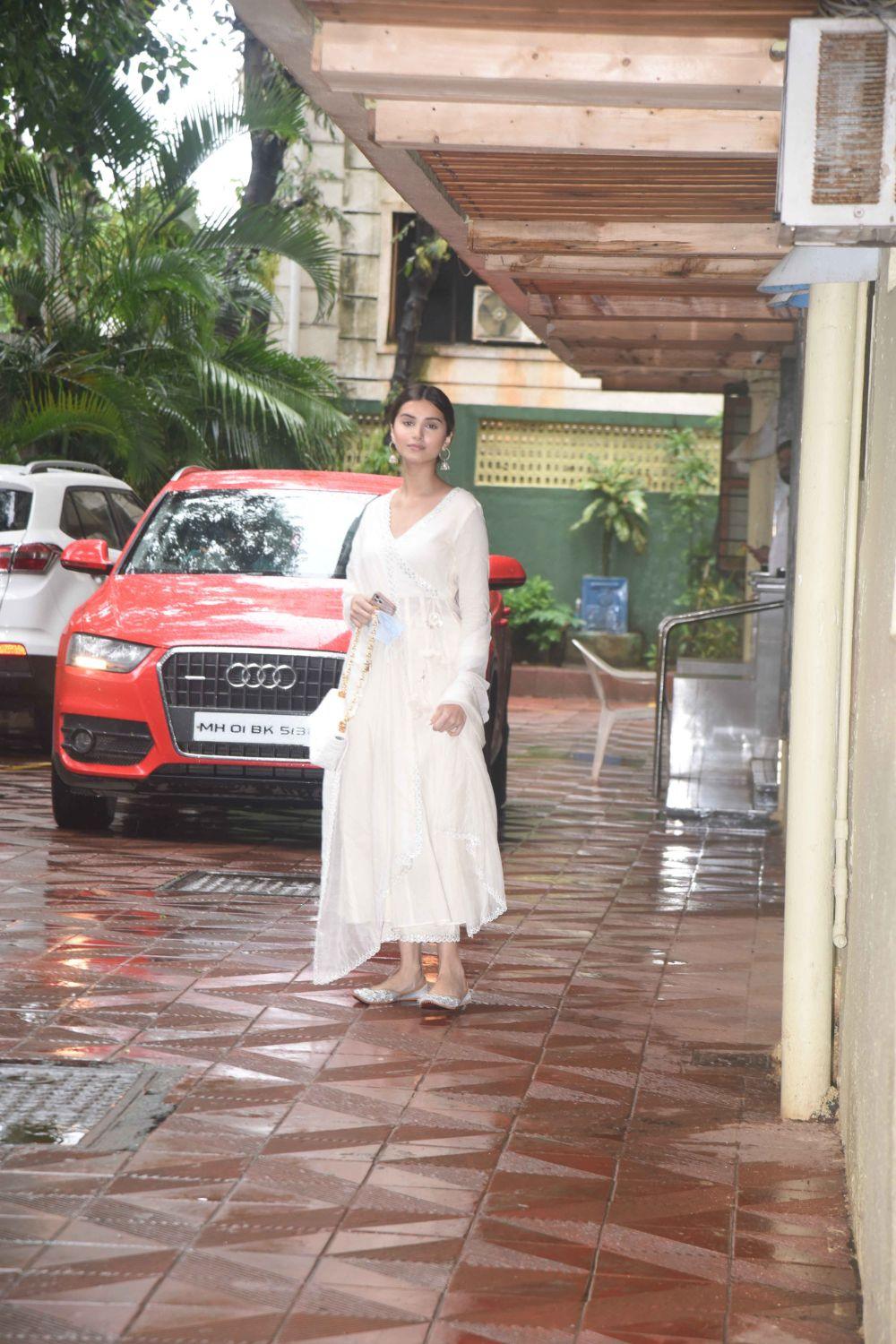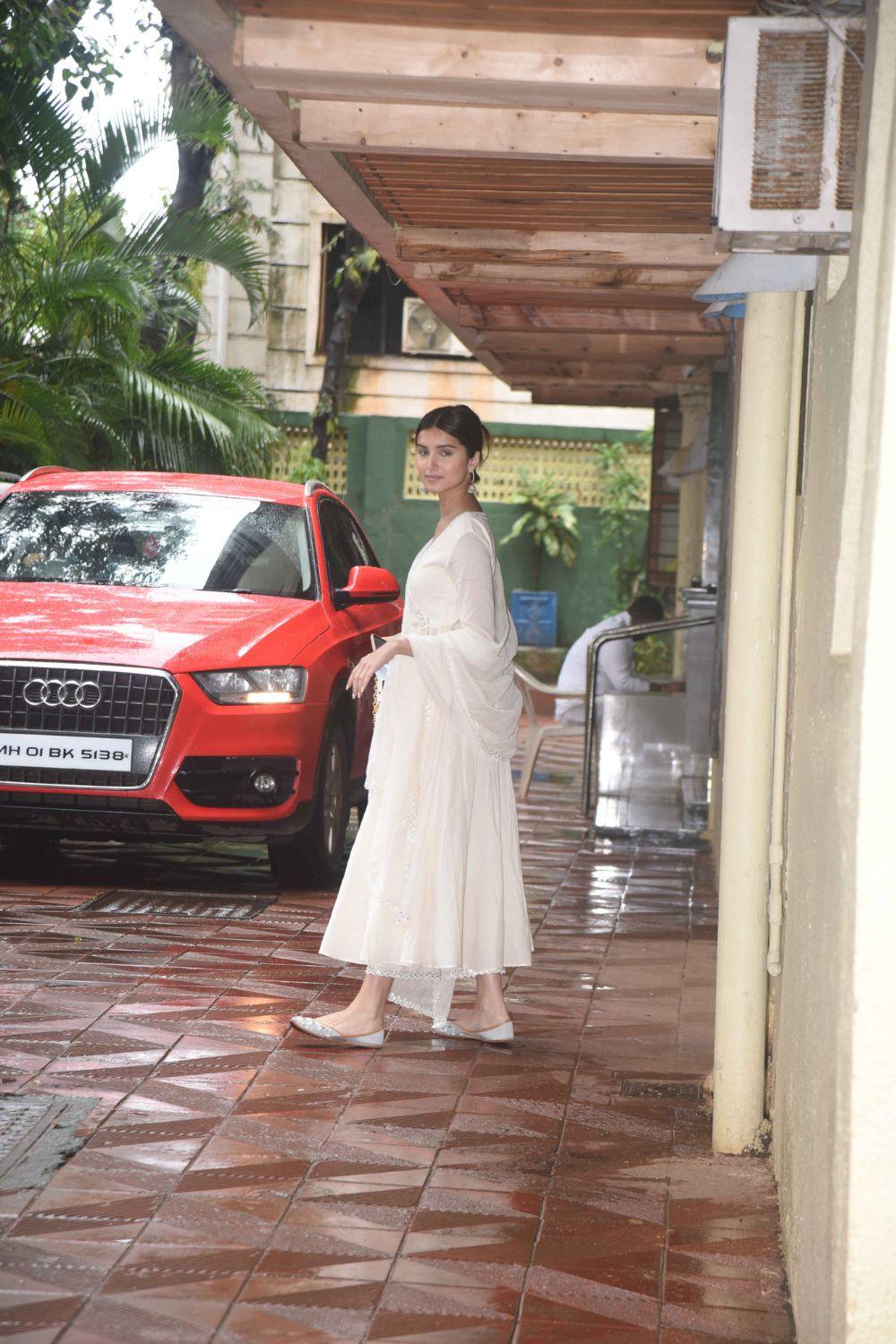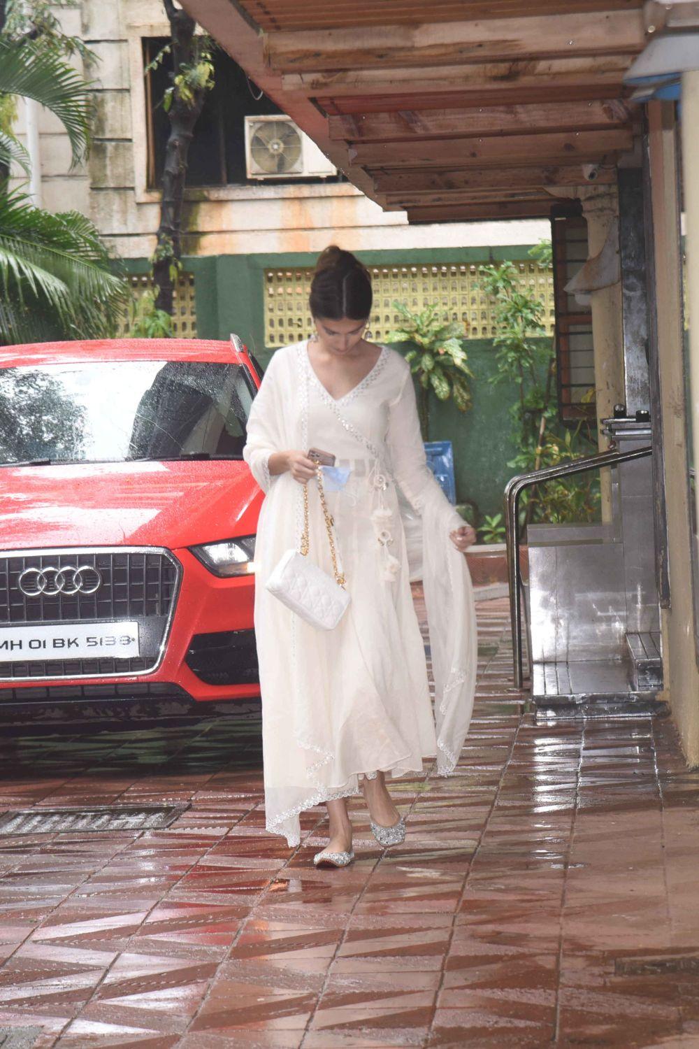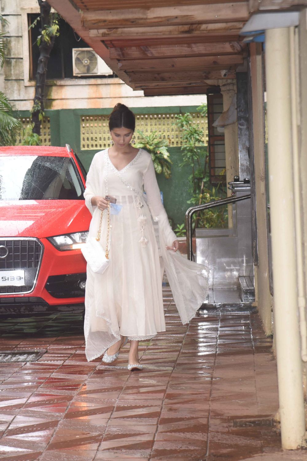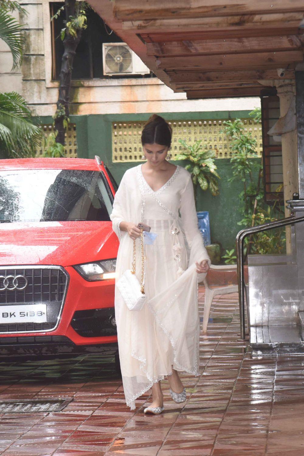 The silk lehenga skirt and blouse come with heavy gota and marodi embroidery and have been paired with a matching organza silk dupatta.